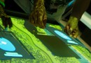 A tutti i visitatori in coda e in attesa di fare il percorso interno viene dato un oggetto che può sembrare un bloc-notes ma che in realtà è un “seedboard”. Si tratta di uno strumento che può essere usato nel padiglione come superficie dove vengono proiettati testi, immagini e filmati: ci sono dei marker, dei sensori, intorno al foglio bianco contenuto all’interno del dispositivo. Questi sensori attivano le postazioni sparse nell’esposizione (nella prima sala, comunque, una hostess spiega come utilizzare il seedboard).