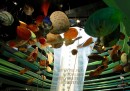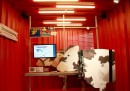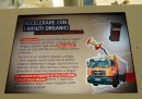 Il percorso vero e proprio comincia dalla seconda sala, dove si parla di temi riguardanti l’acqua, il suolo, il clima e la biodiversità: ci sono vari espositori, dove le persone possono appoggiare il seedboard per leggere informazioni su ricerche e soluzioni proposte dai tedeschi. Ad esempio c’è un progetto di recupero del fosforo da utilizzare come fertilizzante per le piante, un altro sull’applicazione delle colture alternate in agricoltura, o l’utilizzo di un bio-carburante proveniente dai rifiuti domestici. Viene poi affrontato anche il rapporto con il cibo, che deve essere consapevole: c’è una parete con grandi scaffali pieni di prodotti stilizzati, usati per mostrare l’importanza della varietà, ma anche un cumulo di rifiuti che dimostra l’impatto delle nostre scelte riguardo l’alimentazione.