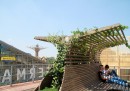 Si prosegue poi nel “Giardino delle idee”, dove ci sono diversi progetti che riguardano la città, come per esempio il giardinaggio mobile o l’orto delle erbe aromatiche. Il percorso interno finisce con lo spettacolo “Be(e) Active”: due ragazzi suonano e cantano, mentre vengono mostrate al pubblico delle immagini del paesaggio tedesco su due schermi a forma di occhi di ape.