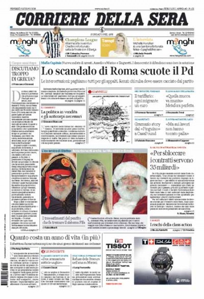 Gli sviluppi e i nuovi arresti dell'inchiesta "Mafia Capitale" su Roma aprono praticamente tutti i giornali di oggi