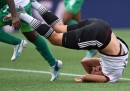 Qualche mese fa molti giornali internazionali si erano occupati di una polemica legata ai Mondiali di calcio femminili e iniziata dopo che la FIFA aveva deciso di giocare tutte le partite della competizione su campi con terreno sintetico. Secondo molte giocatrici, l’erba sintetica influenza il movimento del pallone, giocarci è più faticoso e si rischiano più infortuni, soprattutto dolorose bruciature. Un gruppo di giocatrici – tra cui ci sono anche alcune delle più forti del mondo, come l’americana Abby Wambach e la tedesca Nadine Angerer – avevano fatto causa alla Canadian Soccer Association, accusandola di discriminazione sessuale. A un certo punto alcune calciatrici avevano anche fatto causa alla FIFA, ma l’hanno in seguito ritirata perché il tribunale che doveva esaminarla si era rifiutato di procedere col rito abbreviato – cosa che era necessaria per ottenere una decisione prima dell’inizio del torneo. Si è tornato a parlare della questione il primo giorno dei Mondiali, perché un’ora prima della partita inaugurale tra Canada e Cina la temperatura del terreno era di 49 gradi.