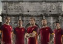 Sono state diffuse oggi le immagini ufficiali della maglia principale che la squadra di calcio della Roma utilizzerà nella stagione 2015/2016. Le maglie sono prodotte da Nike e hanno i classici colori della squadra, con un rosso un po’ più scuro sulle maniche e una banda gialla sui fianchi. Non c’è lo sponsor, come accade alla Roma ormai da tre stagioni, nonostante ciclicamente i giornali raccontino di trattative in procinto di essere definite. Quella presentata oggi è la seconda maglia realizzata da Nike per la Roma, dopo la fine del precedente contratto con Robe di Kappa: il contratto tra la Roma e Nike prevede anche accordi per la costruzione di un grande negozio di articoli sportivi nell’area in cui sorgerà il nuovo stadio della squadra.