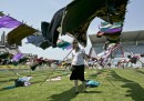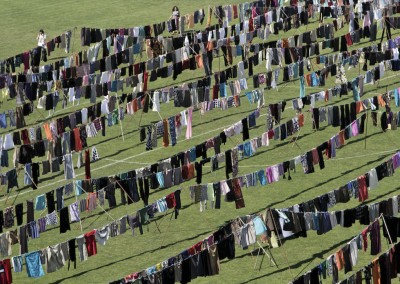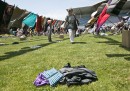 Oggi sarà inaugurata a Pristina, in Kosovo, l’installazione “Thinking of You” dell’artista Alketa Xhafa-Mripa, nata in Kosovo e residente a Londra: è allestita nello stadio principale della città e composta da circa cinquemila vestiti appesi a 45 fili del bucato, per ricordare le persone stuprate e molestate sessualmente durante la guerra in Kosovo.