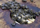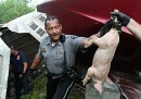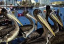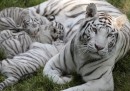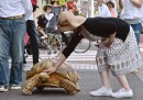 Tra le foto bestiali più belle della settimana c’è Bon-chan, un esemplare di testuggine africana di 19 anni che passeggia a fianco del suo proprietario a Tokyo, in Giappone. Bon-chan è lunga un metro e pesa 70 chilogrammi: il suo proprietario, Hisao Mitani, la porta a passeggio tutti i giorni nel quartiere di Tsukishima, provocando lo stupore degli altri passanti. In un’altra foto notevole – e molto triste – si vede un rinoceronte di nome Hope a cui i bracconieri hanno staccato il corno nasale, fratturandole le ossa del muso e lasciando le cavità nasali esposte, mentre viene preparata per un’operazione chirurgica. Ci sono poi diverse foto dallo zoo di Vienna, tra cui quella di tre tamarino edipo, piccole scimmie diffuse in America Centrale, con una cresta bianca che dalla fronte arriva fino alla schiena e che dà loro un aspetto parecchio punk.
