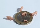 Quella delle foto a corredo di articoli di analisi economica è una vecchia questione, nata soprattutto dall’impossibilità di usare immagini di cronaca o le solite foto di grafici o degli andamenti della Borsa: e i fotografi di tutto il mondo si sforzano sempre di più di trovare un modo originale di rendere visivamente dei concetti astratti, facendo ricorso a miniature,omini dei Lego, fondali fantasiosi, monete di cioccolata e addirittura piccoli animaletti.