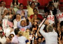Il comizio di lunedì è stato significativamente diverso da buona parte di quelli organizzati dagli altri candidati Repubblicani, e che hanno attirato più che altro elettori bianchi. Bush ha parlato nel campus del Miami Dade College, dove c’è uno dei più grandi corpi studenteschi latinoamericani, e ha riempito la palestra con sostenitori asiatici, neri e latini, giovani e vecchi, che hanno mostrato cartelli della campagna elettorale in inglese e in spagnolo. Prima che Bush salisse sul palco, una famiglia di cantanti cubani si è esibita con una serie di canti tradizionali. Poi un pastore battista nero ha definito Bush «un uomo di profonde convinzioni». La madre colombiana di una bambina disabile ha parlato di ciò che lui ha fatto in passato, con una presentazione in spagnolo. L’ex vicegovernatore di Bush si è rivolto alla folla dicendo: «È come una grande famiglia: la famiglia Bush, la grande famiglia Bush». Il senatore della Florida Don Gaetz ha invece detto che Bush «è la nuova Florida, è la nuova America, è il nuovo partito Repubblicano».
