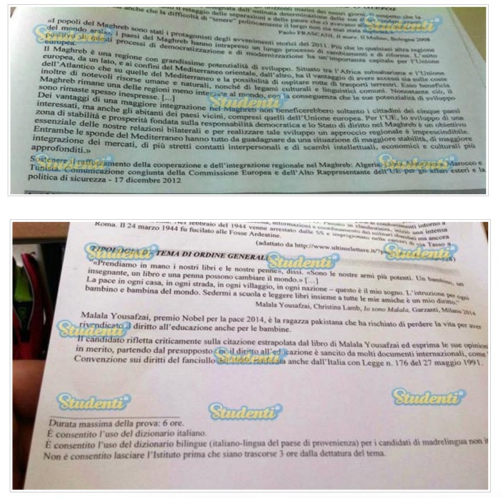 Oggi è iniziato l’esame di stato per le scuole superiori con la prima prova scritta, il tema di maturità. Ai 489.962 studenti partecipanti sono state proposte, come ogni anno diverse tracce e tipologie di temi: analisi del testo, ambito artistico letterario, ambito scientifico, ambito socio-economico, ambito storico-politico, tema di carattere storico e tema di attualità. Per l’analisi del testo, per esempio, c’era un testo di Italo Calvino, mentre il tema storico copriva la Resistenza e la lotto al nazi-fascismo in Italia, un argomento ricorrente nei temi di maturità.