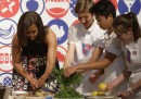 Fra il 17 e il 18 giugno Michelle Obama, la moglie del presidente degli Stati Uniti Barack Obama, ha visitato Milano ed Expo assieme alle figlie Malia e Sasha. Il 17 giugno Michelle Obama ha visitato la chiesa di Santa Maria delle Grazie, dove è contenuto il famoso dipinto del “Cenacolo” di Leonardo da Vinci, e ha partecipato a una dimostrazione culinaria in un ristorante americano di Milano. Il giorno dopo ha visitato Expo accompagnata da Agnese Landini, la moglie di Matteo Renzi, e ha visitato il tetto del Duomo di Milano. In questi giorni Michelle Obama ha perlopiù tenuto discorsi, firmato autografi e incontrato un sacco di persone: ed è anche stata estesamente fotografata.