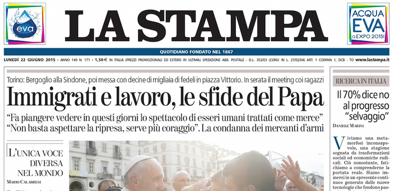 Le prime pagine di lunedì 22 giugno 2015