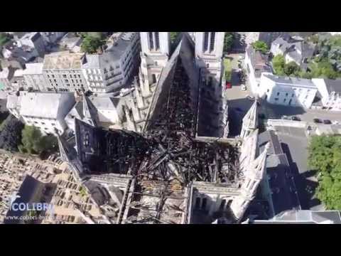 La basilica di Nantes andata a fuoco, vista dall’alto