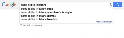 Sulla base dei suggerimenti per le ricerche che dà Google, ci si può rendere conto facilmente di quali siano le traduzioni più richieste nelle varie lingue dagli italiani (ti amo, ti voglio bene, come stai, buongiorno, grazie, prego), ma anche come le richieste cambino a seconda della lingua indicata e spesso con conseguenze piuttosto bizzarre. E poi c’è qualcuno che chiede come si dice in italiano una parola che è già italiana, come rutto.