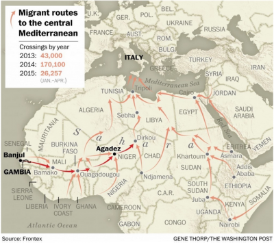 Nel Gambia, uno stato dell’Africa Occidentale, almeno il 4 per cento della popolazione vive attualmente all’estero e circa il 20 per cento del prodotto interno lordo del paese è rappresentato dai versamenti di chi è all’estero e invia aiuti alle famiglie rimaste nel paese di origine.