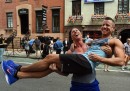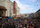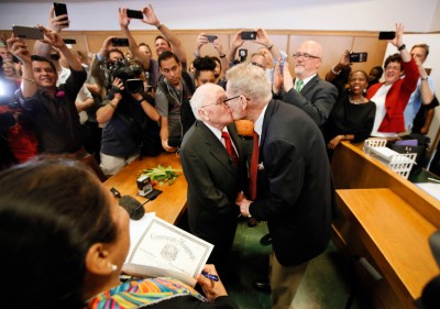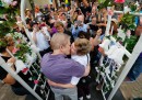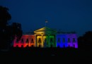 George Harris e Jack Evans sono stati la prima coppia gay a sposarsi nella contea di Dallas, in Texas, dopo la storica decisione della Corte Suprema che ha dichiarato incostituzionali i divieti ai matrimoni gay in tutti gli stati americani. Harris ha 82 anni ed Evans 85: i due stanno insieme da 54 anni. Molte altre coppie di donne e uomini gay si sono sposati ieri e lo faranno nei prossimi giorni in tutto il territorio americano, soprattutto in quegli stati in cui fino a venerdì i matrimoni gay non venivano riconosciuti validi dalla legge. La sentenza della Corte Suprema è stata festeggiata in moltissime città degli Stati Uniti: a Washington la facciata della Casa Bianca, la sede del governo, è stata illuminata dai colori dell’arcobaleno, che sono gli stessi della bandiera usata per sostenere i diritti dei gay. Una cosa simile è stata fatta al municipio di San Francisco, che ha appeso all’entrata una grande bandiera colorata per festeggiare la decisione della Corte Suprema.
