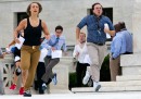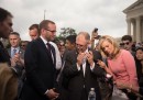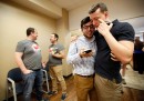 Tra le cose fotografate ieri c’è stata anche la cosiddetta “gara degli stagisti”, una cosa molto divertente vista da qui: le sentenze della Corte Suprema vengono diffuse in un primo momento solo in formato cartaceo e quindi le grandi testate devono mandare fisicamente qualcuno dentro l’edificio della Corte a prendere i fogli con le sentenze e portarli fuori. L’operazione solitamente viene affidata gli stagisti, che muniti di scarpe da ginnastica partecipano – appunto – a quella che viene definita “la gara degli stagisti”. E per finire ieri ci sono stati alcuni momenti particolarmente emozionanti: per esempio quando il presidente Obama ha chiamato al telefono e in diretta televisiva Jim Obergefell, uno dei ricorrenti della causa che ha dato avvio al processo che ha poi portato alla sentenza.