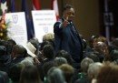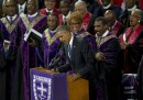 Il presidente degli Stati Uniti Barack Obama ha partecipato ieri al funerale di Clementa C. Pinckney, il pastore della chiesa metodista di Charleston dove la scorsa settimana il 21enne Dylann Roof ha ucciso nove persone. Obama ha tenuto un discorso di 40 minuti in cui ha parlato delle attuali discriminazioni verso gli afroamericani, della necessità di approvare una legge sul controllo delle armi e ha appoggiato la decisione di rimuovere la bandiera confederata dalla capitale del South Carolina, Columbia. Alla fine del discorso, parlando della “grazia” citata più volte nei minuti precedenti, Obama ha anche intonato il famoso canto cristiano “Amazing Grace”, da decenni una specie di inno per i credenti afroamericani. Le persone presenti hanno reagito con sorpresa e poi si sono unite al canto di Obama.