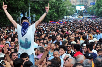 Le proteste sono iniziate lo scorso 19 giugno a Erevan, quando un gruppo di giovani manifestanti ha marciato verso la residenza del presidente Serzh Sargsyan gridando lo slogan “No al saccheggio”. Diversi analisti scrivono che alla base delle proteste c’è l’aumento del prezzo dell’energia elettrica ma soprattutto un malcontento diffuso legato a bassi salari, disoccupazione e corruzione. Martedì 23 giugno ci sono stati violenti scontri tra manifestanti e polizia, che ha usato cannoni ad acqua e manganelli per disperdere la folla: 25 persone sono rimaste ferite e ci sono stati 237 arresti. Da allora le manifestazioni sono diventati ancora più grandi: partecipano soprattutto giovani che dicono di essere attivisti non affiliati ad alcun partito politico.