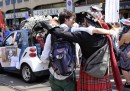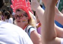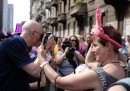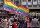 Sabato 26 giugno a Milano migliaia di persone hanno partecipato al Milano Pride, una manifestazione che si tiene ogni anno per chiedere più diritti per le persone gay, lesbiche, bisessuali e transessuali. La manifestazione è iniziata alle 3 di pomeriggio davanti alla stazione Centrale e si è conclusa qualche ora dopo in Piazza Oberdan: quest’anno il Milano Pride è stata anche un’occasione per festeggiare la storica decisione presa venerdì dalla Corte Suprema degli Stati Uniti che ha legalizzato i matrimoni gay in tutto il paese. Oggi per Milano hanno sfilato persone in costume con molti striscioni e palloncini. Quando la manifestazione è arrivata alla fine del suo percorso ci sono stati dei discorsi di rappresentati di organizzazioni per i diritti delle persone LGBT.