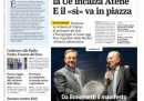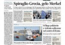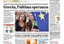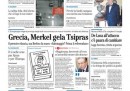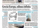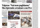 Dalla mezzanotte di ieri la Grecia è in default con il Fondo Monetario Internazionale per non aver pagato il rimborso che doveva: anche oggi le notizie che riguardano la Grecia occupano quasi tutte le prime pagine dei giornali italiani. Alcuni si concentrano sulle trattative ancora in corso tra l’Europa e il governo Tsipras, altri hanno in prima pagina le foto dalla grande manifestazione di ieri ad Atene per sostenere il Sì – ossia l’accettazione della proposta dell’Europa – al referendum di sabato. Fanno eccezione oggi il Giornale, che apre parlando di 10 indagati per legami con l’Isis in Italia, e il Tempo, che dedica il titolo in prima pagina a una sua indagine sugli sprechi dell’ENIT, l’agenzia nazionale per il turismo. Sui giornali sportivi si continua a parlare di calciomercato, con i nuovi possibili acquisti di Inter, Milan e Juventus.