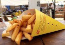 Anche il metodo di frittura è importante per rendere le frites così buone: la doppia frittura va fatta con l’olio vegetale o con il grasso bovino “Blanc de bœuf” – che dà alle patatine belghe quell’odore molto riconoscibile – e la temperatura dell’olio non deve superare i 175 gradi centigradi. Il Belgio è il primo esportatore al mondo di patate fritte surgelate e i belgi ci tengono a sottolineare che le patatine fritte non sono nate in Francia, ma in Belgio: vengono chiamate french fries solo per questioni di marketing, dicono, dato che in Francia non c’è una grande cultura delle patatine, mentre in Belgio ogni pochi metri si trovano chioschi che vendono coni di patatine fritte.