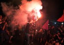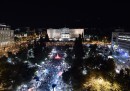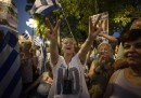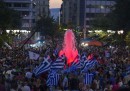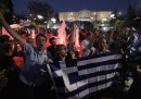 Il referendum in Grecia sulle proposte dei creditori internazionali è stato vinto dal “No”, che ha ottenuto il 61,31 per cento dei voti. Il futuro della Grecia rimane molto incerto, ma domenica sera migliaia di sostenitori del “No” sono scesi nelle piazze e nelle strade di Atene a festeggiare: a piazza Klafthmonos sono raccolti i sostenitori di Syriza – il partito di Alexis Tsipras, che ha fatto campagna per il No – mentre piazza Syntagma davanti al Parlamento è piena di gente che sventola bandiere greche, si abbraccia e si bacia, attorno alla fontana illuminata di rosso.