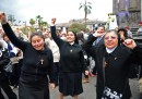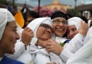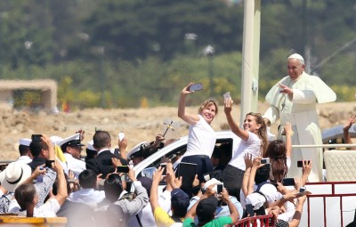 Come in tutti i suoi viaggi, Papa Francesco è stato accolto da folle che sventolavano bandierine, santini, fotografie, spesso aspettando per ore sotto il sole, dormendo in tenda o addirittura sulle sedie preparate in vista della messa. C’erano suore e frati che ballavano e cantavano, gente che lanciava petali di fiori al suo passaggio, bambini che si fotografavano davanti ai suoi poster e anche una piccola protesta di attiviste vestite da suore, a La Paz.