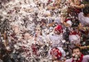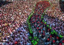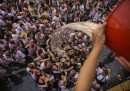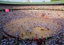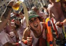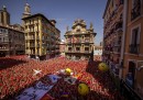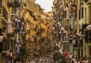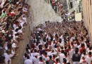 Lunedì 6 luglio è iniziata a Pamplona, in Spagna, la festa di San Firmino, quella con la gente e i tori e la gente che corre davanti ai tori (anche se nel primo giorno di tori non se ne sono visti): migliaia di persone si sono riunite davanti al municipio della città, il sindaco si è affacciato dal balcone a mezzogiorno in punto, la persona designata ha gridato il tradizionale annuncio – «Pamploneses. Viva San Fermín, Gora San Fermín!» – e ha acceso la miccia del Chupinazo, che in lingua basca significa razzo, dando ufficialmente inizio alla festa. In piazza le persone hanno cominciato a sventolare i tradizionali foulard rossi e stappato bottiglie di vino e spumante. La festa di San Firmino, resa celebre dal romanzo Fiesta di Ernest Hemingway, durerà fino alla mezzanotte del 14 luglio.
