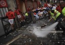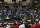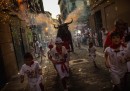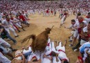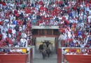 A Pamplona, nel nord della Spagna, vanno avanti dal 6 luglio le celebrazioni della festa di San Firmino, uno degli eventi più suggestivi e noti anche fuori dalla Spagna. La festa è da decenni famosa in tutto il mondo grazie alla popolarità ottenuta dopo la pubblicazione del romanzo di Ernest Hemingway Fiesta, ambientato proprio a Pamplona. La parte più conosciuta di questa festa si svolge ogni mattina dal 7 al 14 luglio ed è il cosiddetto ‘“encierro” (“chiusura”): decine di persone “accompagnano” i tori verso l’arena della corrida per un percorso di 800 metri stretto e affollatissimo, correndogli davanti e dietro. Capita spesso che alcuni degli spettatori rimangano feriti: finora – stamattina si è corso il quinto encierro – quattro persone sono state incornate e sei sono rimaste lievemente ferite.