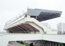 I Giochi della XXII Olimpiade, che si svolsero a Mosca dal 19 luglio al 3 agosto 1980, furono l’ultimo grande evento organizzato dall’Unione Sovietica per dimostrare la superiorità del regime socialista e del comunismo sul capitalismo: furono le famose olimpiadi del boicottaggio degli Stati Uniti, a causa dell’invasione sovietica dell’Afghanistan, e di altre 64 nazioni tra cui il Canada, la Germania Ovest, la Cina e il blocco delle nazioni arabe. La maggior parte delle infrastrutture per le Olimpiadi del 1980 furono progettate tra il 1975 e il 1978: quello che sono adesso è un esempio di cosa può accadere ai siti olimpici (qui per esempio si può vedere cosa è rimasto dopo le Olimpiadi di Atene 2004) in un arco temporale di trent’anni. Alcuni luoghi sono ancora utilizzati, come era previsto inizialmente, altri sono stati adattati a nuove funzioni e oggi ospitano uffici e negozi, altri ancora invece sono rimasti abbandonati. Come spiega la fotografa, “molti edifici non si fondono con la struttura della città: quelli che erano stati concepiti inizialmente come messaggeri del futuro ora sembrano alieni provenienti dal passato”.