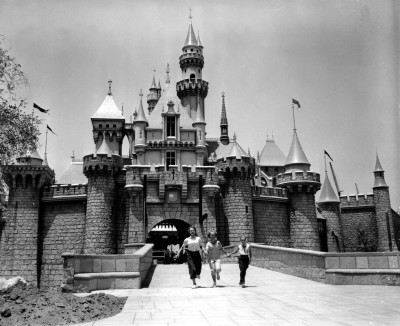 Walt Disney creò il parco 22 anni dopo aver fondato, insieme al fratello Roy Oliver Disney, la società che si chiama come lui e che che oggi vale circa 150 miliardi di euro. Quando Disneyland fu inaugurato erano già usciti Biancaneve e i sette nani, Le avventure di Peter Pan, Fantasia e, nel giugno 1955, Lilly e il vagabondo. Per realizzare Disneyland, Walt Disney acquistò ad Anaheim, una città a 30 chilometri da Los Angeles, 1,5 chilometri quadrati di terreno: per il terreno e per i lavori di costruzione – che durarono meno di un anno – investì 17 milioni di dollari, arrivando anche a ipotecare alcune sue proprietà. Nel 1955 il parco ospitava cinque diverse aree tematiche, ancora oggi attive: Main Street, U.S.A., Adventureland, Frontierland, Fantasyland e Tomorrowland. All’ingresso del parco era ben visibile il Castello della Bella Addormentata, che fu costruito quattro anni prima della presentazione del film.