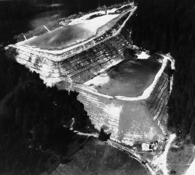 Gli argini che cedettero, liberando l’acqua e il fango che travolsero Stava, erano gli argini dei due bacini di decantazione della miniera di Prestavel, costruiti per accogliere i materiali di scarto. Negli anni Trenta del Novecento a Prestaval si era trovata la fluorite, un minerale usato nell’industria metallurgica. Negli anni dopo la Seconda guerra mondiale la miniera fu gestita da diverse società: Montecatini, Montedison, Eni e Prealpi. Il primo bacino di decantazione fu costruito nel 1961 dalla Montecatini: per legge non avrebbe potuto superare i nove metri di profondità, ma negli anni arrivò a misurarne 25. La Flourmine – una società del gruppo Montedison che nel frattempo aveva acquistato la miniera – decise nel 1974 di costruire un secondo bacino, più in alto rispetto al primo. Scrive il Corriere della Sera: