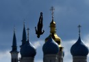 Lunedì 3 agosto si è tenuto a Kazan, in Russia, il primo turno del torneo di tuffi da grandi altezze (“high diving”) nell’ambito dei Mondiali di nuoto. Il torneo si disputa all’aperto in un bacino d’acqua creato dal fiume Kazanka, poiché la piattaforma è troppo alta per essere contenuta in un palazzetto (dove si sono disputate le gare di tuffi “classiche”). Per il torneo maschile la piattaforma è alta 27 metri, mentre per quello femminile 20 metri.