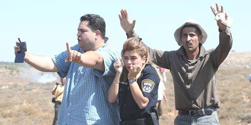 Negli ultimi giorni è circolata molto sui social media ed è stata ripresa da diversi giornali la foto di due palestinesi che proteggono una poliziotta israeliana. La foto è stata scattata sabato 1 agosto da Shaul Golan, fotografo del quotidiano israeliano Yedioth Ahronoth, non lontano Esh Kodesh, un insediamento israeliano in Cisgiordania. La poliziotta era rimasta isolata dai colleghi durante uno scontro tra coloni ultra-ortodossi e contadini palestinesi che si stavano lanciando sassi gli uni contro gli altri, oltre che contro gli agenti.
