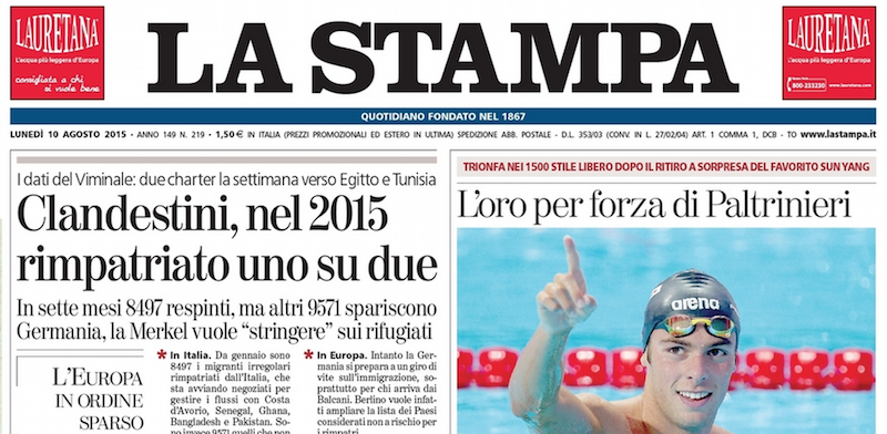 Le prime pagine di lunedì 10 agosto 2015