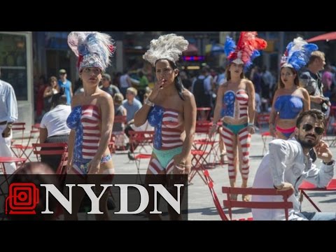 Le persone che posano a Times Square per delle foto sono circa un centinaio: almeno un decimo di loro sono donne in topless. La legge impedisce loro di chiedere dei soldi per le foto, ma alcuni lo fanno lo stesso, talvolta con prepotenza. Il sindaco di New York Bill de Blasio ieri ha parlato del problema (dei topless e della richiesta di soldi):