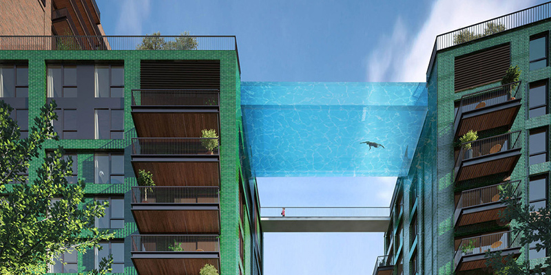 Una piscina sospesa realizzata interamente con pannelli di vetro sarà costruita tra due palazzi di Nine Elms, un distretto nella parte nord-orientale del quartiere di Wandsworth a Londra. Il progetto è molto ambizioso e rientra nei piani di riqualificazione urbana dall’area. La piscina sarà lunga 25 metri e metterà in comunicazioni le terrazze di due condomini che fanno parte degli Embassy Gardens, una grande area residenziale che una volta completata offrirà circa duemila appartamenti. Stando al progetto, la piscina di vetro sarà larga cinque metri e raggiungerà una profondità massima di tre metri. I pannelli utilizzati per la sua costruzione saranno spessi circa 20 centimetri.