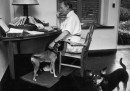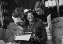 Ancora qualche anno fa c’erano giornalisti che esibivano fieri di scrivere ancora con la macchina da scrivere (forse erano gli stessi che a questo punto stanno già mugugnando che si devono chiamare “macchine per scrivere”), ma sostenerne la maggiore praticità è diventato abbastanza impossibile. Resta il fatto che – come i vinili; i VHS no – sono però bellissime, le macchine da scrivere: molto più belle di questi cosi. Ed è una valutazione così antica e condivisa, che per decenni le macchine da scrivere sono state usate non solo per scrivere ma anche per fotografare: ovvero come protagoniste di set e ritratti in cui l’elemento estetico arricchiva il personaggio ritratto. E ne hanno approfittato le più varie celebrità, come vedete – non solo giornalisti e scrittori – con risultati che commuoverebbero i due giovani protagonisti di “Giovani si diventa” (loro stanno ricevendo questo articolo via fax).