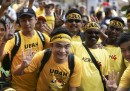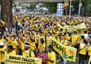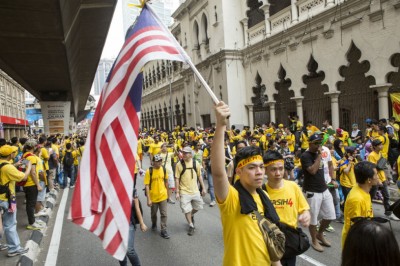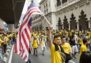 Migliaia di persone chiedono le sue dimissioni a causa di un presunto scandalo di corruzione: si vestono quasi tutte di giallo, il colore del movimento Bersih (che in malesiano significa "pulito")