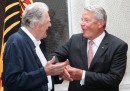 Tra quelli che valeva la pena fotografare questa settimana ci sono attori, attrici, membri della giuria, e registi presenti al Festival del Cinema di Venezia, che stiamo mostrando abbondantemente qui e qui. L’altro grande evento pop della settimana è stata l’assegnazione degli MTV Video Music Awards e non poteva mancare la foto di almeno uno dei numerosi costumi bizzarri della conduttrice Miley Cyrus. Per chi apprezza un altro tipo di fascino, ci sono gli attori francesi Jean-Paul Belmondo e Charles Gerard, Emma Thompson a una manifestazione di Greenpeace, e Barack Obama con in braccio un cagnolino in Alaska. Infine il cancelliere tedesco Angela Merkel e il primo ministro spagnolo Mariano Rajoy che passeggiano in un parco a Berlino, Gerard Depardieu in scooter a Marsiglia e lo sguardo un po’ inquietante di J. K. Simmons.