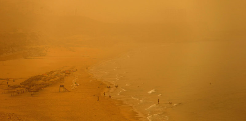 Negli ultimi due giorni il Libano e Israele sono stati colpiti da una grossa tempesta di sabbia che ha ridotto di molto la visibilità e creato problemi respiratori a diverse persone. In Libano, due persone sono morte per complicazioni respiratorie. Dalle foto comparse sulle agenzie, però, alcune persone non sembrano preoccuparsi troppo della tempesta: c’è chi continua a fare il bagno o a correre vicino alla spiaggia, come se fosse un giorno come un altro.