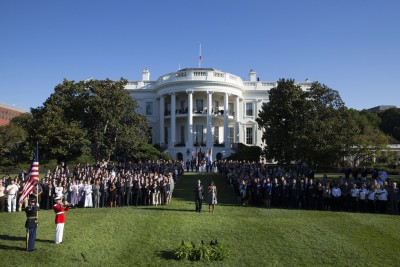 Con Barack e Michelle Obama in piedi in silenzio nei giardini della Casa Bianca, e le cerimonie a New York e al Pentagono