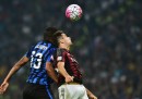 Milan e Inter stanno giocando allo stadio di San Siro il primo derby della stagione di Serie A. Quest’anno le aspettative per entrambe le squadre sono molto alte. In estate sia l’Inter che il Milan hanno cambiato e speso moltissimo, e dopo diverse stagioni mediocri hanno come obiettivo dichiarato quello di arrivare fra le prime tre in classifica e tornare a giocare la Champions League. Il problema è che per entrambe le squadre l’inizio di stagione è stato piuttosto faticoso: l’Inter ha giocato un brutto pre-campionato, ha comprato diversi giocatori negli ultimi giorni di calciomercato dopo alcune pubbliche “lamentele” dell’allenatore Roberto Mancini e ha vinto di misura contro Atalanta e Carpi nelle prime due giornate. Il Milan è messo ancora peggio: ha perso nettamente contro la Fiorentina alla prima giornata e ha vinto senza merito contro l’Empoli in casa. In entrambe le partite il Milan ha giocato in maniera lenta e prevedibile, come per gran parte della scorsa stagione.