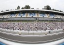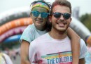 Sabato 12 settembre si è tenuta all’autodromo di Monza l’ultima tappa italiana della Color Run, una serie di brevi “gare” di corsa in cui lo scopo è arrivare alla fine sporchi di vernice colorata. La Color Run è stata ideata in Germania e la prima edizione italiana si è corsa nel 2013. Alla corsa di sabato hanno partecipato circa 20mila persone: le tappe precedenti dell’edizione del 2015 si sono corse a Trento, Torino, Genova, Bari e altre città. Partecipare alla Color Run costa da 17,99 a 30 euro a seconda del giorno in cui si iscrive, e la quota comprende anche la tenuta di gara da indossare. Durante la gara alcuni addetti versano della vernice naturale addosso ai partecipanti, che così finiscono la gara parecchio sudati e colorati: e anche piuttosto contenti, a giudicare dalle foto.