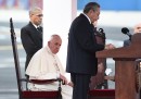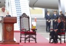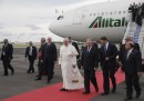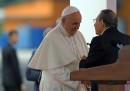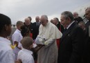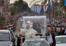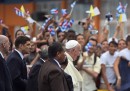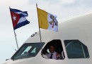 Sabato pomeriggio Papa Francesco è arrivato a Cuba, la prima tappa di un viaggio di nove giorni che comprenderà anche gli Stati Uniti. Papa Francesco è arrivato a bordo di un aereo: è stato accolto dal presidente cubano Raúl Castro e dopo un breve e formale discorso ha fatto un giro per alcune strade dell’Avana, alcune delle quali riasfaltate e ripitturate per l’occasione. Secondo il direttore dell’ufficio stampa del Vaticano Federico Lombardi circa 100mila persone hanno accolto il Papa sulla strada che porta dall’aeroporto al centro dell’Avana.