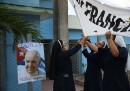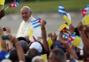 Sabato 19 settembre Papa Francesco è arrivato a Cuba per la sua prima visita ufficiale nel paese dall’inizio del suo pontificato. Il Papa è atterrato nel pomeriggio di sabato all’aeroporto dell’Avana ed è stato accolto dal presidente cubano Raul Castro con una breve cerimonia ufficiale; sabato 20 ha celebrato una messa in piazza della Rivoluzione all’Avana, davanti a diverse migliaia di persone, e ha poi incontrato in modo meno formale i cattolici cubani tenendo un discorso pubblico e visitando un centro culturale cattolico dell’Avana. Papa Francesco, durante la visita, ha anche incontrato alcuni esponenti del governo cubano e, cosa non scontata, l’ex presidente Fidel Castro: i due si sono incontrati privatamente, discutendo per lo più di questioni legate alla salvaguardia dell’ambiente e scambiandosi doni.