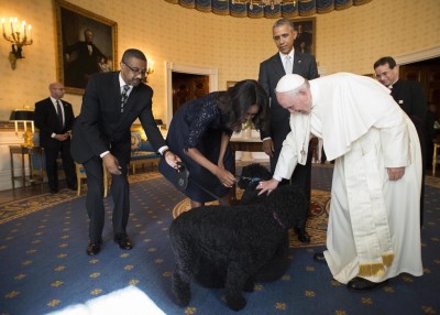 Papa Francesco è arrivato martedì 22 settembre negli Stati Uniti, dove rimarrà per qualche giorno in visita ufficiale. Il Papa è atterrato alla Joint Base Andrews, in Maryland ma a pochi chilometri da Washington D.C., dove è stato accolto dal presidente degli Stati Uniti Barack Obama, dalla sua famiglia e dal vice presidente Joe Biden, oltre che da una piccola folla di persone. Mercoledì mattina il Papa è stato ricevuto alla Casa Bianca dove ha avuto un incontro privato con Barack Obama e ha poi condotto una preghiera con i vescovi statunitensi nella cattedrale di St. Matthew a Washington. Nel pomeriggio il Papa celebrerà, davanti a 25.000 persone, una messa di canonizzazione per il missionario spagnolo Junipero Serra. Il Papa rimarrà negli Stati Uniti fino a domenica e visiterà anche New York e Philadelphia per una serie di incontri pubblici e privati.