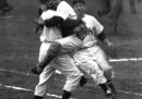 Yogi Berra, uno dei più famosi giocatori di baseball di tutti i tempi, è morto a 90 anni in una casa di riposo nel New Jersey. Berra era in particolare un giocatore leggendario e un simbolo per la squadra dei New York Yankees, con cui aveva giocato per quasi tutta la sua carriera e aveva vinto – nel suo ruolo di ricevitore, ma anche di coach e manager – 13 World Series (le finali del campionato di baseball americano), giocandone in tutto 21: nessun altro giocatore ha vinto tanto. La popolarità e la simpatia di Berra erano anche legate alla sua abitudine a commenti tra il filosofico e il comico che a volte inciampavano con la logica o la lingua, come “Quando trovi un bivio sulla tua strada, prendilo”, “Si possono osservare molte cose guardando”, “Vai sempre ai funerali degli altri, altrimenti non verranno ai tuoi”, “Le piccole cose sono grandi”, “Non ci va più nessuno, è troppo affollato”: divennero “Yogismi” e lui li pubblicò nel 1998 in un libro intitolato “The Yogi Book – Non ho detto tutto quello che ho detto”, citando un’altra sua battuta. E il suo carattere, il suo aspetto fisico e la sua buffa goffaggine dialettica superarono nella considerazione generale anche le sue qualità di giocatore, che erano notevoli ma sono spesso state ritenute non straordinarie quanto quelle di altri famosissimi giocatori della storia americana.