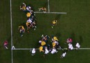 Deontay Wilder è un pugile statunitense di 29 anni: pesa circa cento chilogrammi, è alto poco più di due metri ed è il detentore del titolo mondiale dei pesi massimi WBC (World Boxing Council) dal gennaio 2015. Il 26 settembre in Alabama, negli Stati Uniti, Wilder ha difeso il suo titolo mondiale contro il francese Johann Duhaupas e ha vinto per K.O. tecnico all’undicesimo round: nella sua carriera Wilder ha disputato 35 incontri e li ha vinti tutti, 34 dei quali per K.O. Alla fine dell’incontro Wilder si è complimentato con Duhaupas: «Non ci sono limiti a ciò che posso fare. Voglio ringraziare Duhaupas per avermi dato la possibilità di dimostrarlo. Senza la sua forza e la sua ostinazione non avrei potuto dimostrare quel che ho dimostrato durante l’incontro». Nella foto qui sopra Wilder è quello a destra, quello che alza il guantone Duhaupas, il pugile sconfitto.