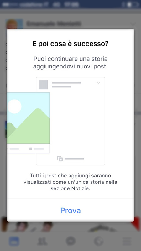 Facebook ha aggiunto una nuova opzione che permette di scrivere post collegati tra loro, in modo da raccontare una storia man mano che si sta sviluppando. Il sistema è disponibile sull’applicazione per dispositivi mobili, mentre non è ancora chiaro se sarà messo a disposizione anche nella classica versione per browser. Dopo avere pubblicato un post, Facebook suggerisce di aggiungerne un nuovo in coda, che risulterà poi collegato a quello iniziale. Per farlo bisogna selezionare la voce “Aggiungi un post a questa storia” in fondo al post appena pubblicato. L’opzione è visibile solamente sotto alcuni tipi di post e non viene mostrata nel caso in cui si condivida un contenuto.