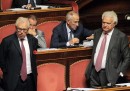È ripreso oggi nell’aula del Senato l’esame del cosiddetto ddl Boschi per la riforma della camera alta del parlamento italiano. Finora la discussione è stata molto complicata, con milioni di emendamenti presentati (la maggior parte dei quali non ammessi), proteste, sospensioni ed “emendamenti canguro”, scritti e approvati dalla maggioranza per farne saltare altri. Nelle votazioni degli ultimi due giorni la maggioranza ha retto con margini piuttosto ampi anche grazie all’appoggio di Alleanza Liberalpopolare, gruppo fondato da Denis Verdini con i fuoriusciti di Forza Italia. Oggi sono però previste delle votazioni a scrutinio segreto, anche se meno del previsto.