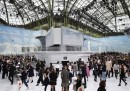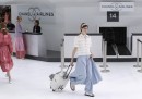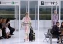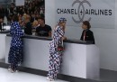Martedì 6 ottobre è il penultimo giorno della settimana della moda di Parigi, durante la quale vengono presentate le collezioni femminili primavera/estate 2016. E in mattinata ha sfilato Chanel, con la collezione disegnata dal celebre stilista tedesco Karl Lagerfeld – che ha 85 anni, lavora con Chanel dal 1983 ed è anche fotografo, direttore creativo di Fendi, ed ha una propria etichetta personale – il quale ha scelto ancora una volta come location per la sua presentazione il Gran Palais di Parigi, allestito però come se fosse un aeroporto.